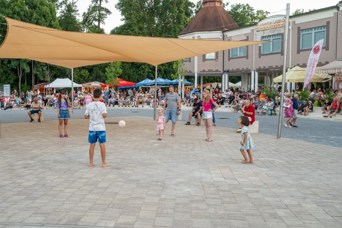 Implemented within the Be Ready project, Hévíz’s pilot demonstrates how a white measure can ease heat stress in intensively used urban spaces where in-ground planting is not possible.