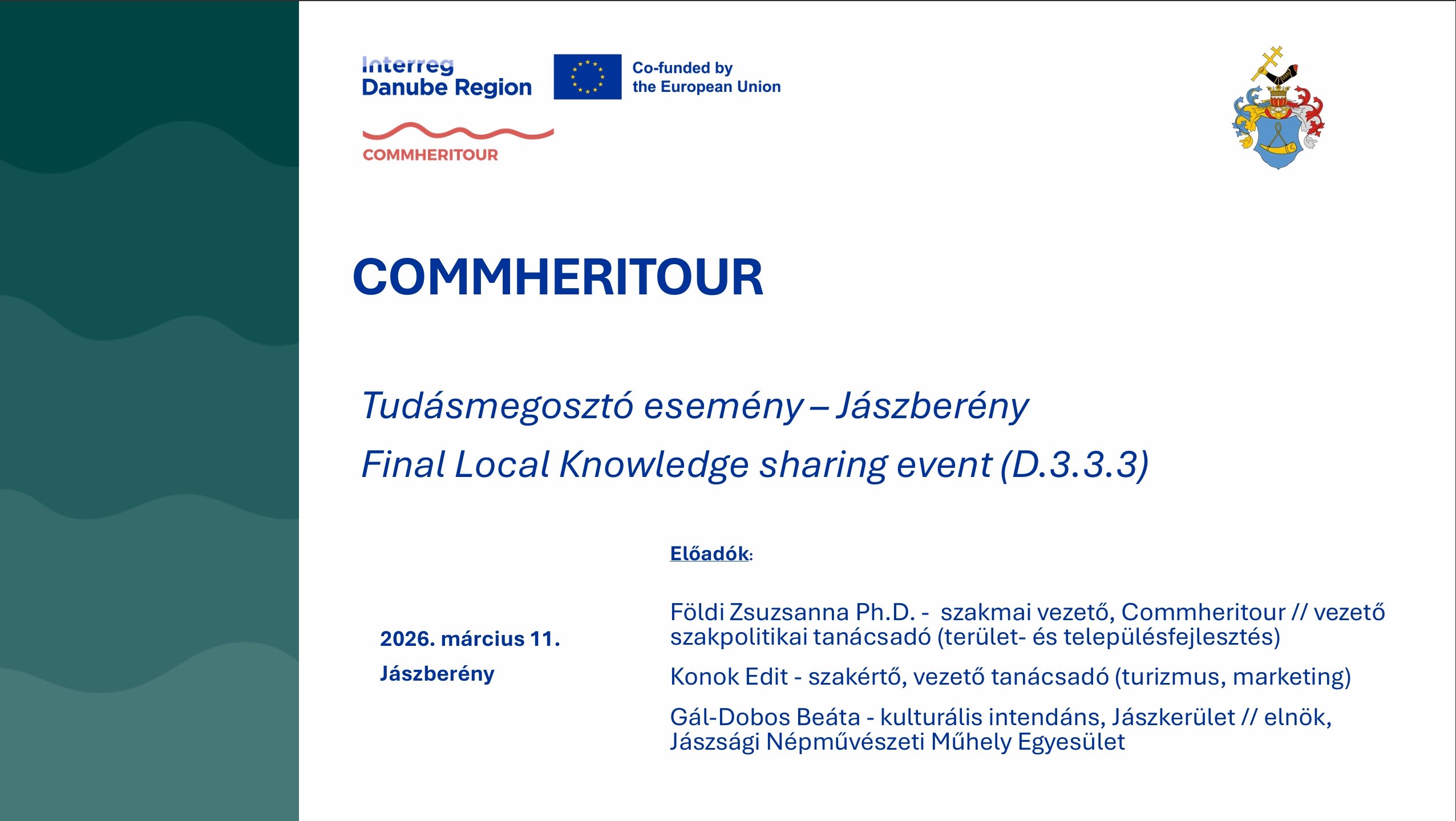 The local closing event also provided an opportunity for project experts to invite council members to the main final events of the COMMHERITOUR project, which will take place in Jászberény on April 3, 2026 (City Day), and between May 11–13, 2026, the international final event.