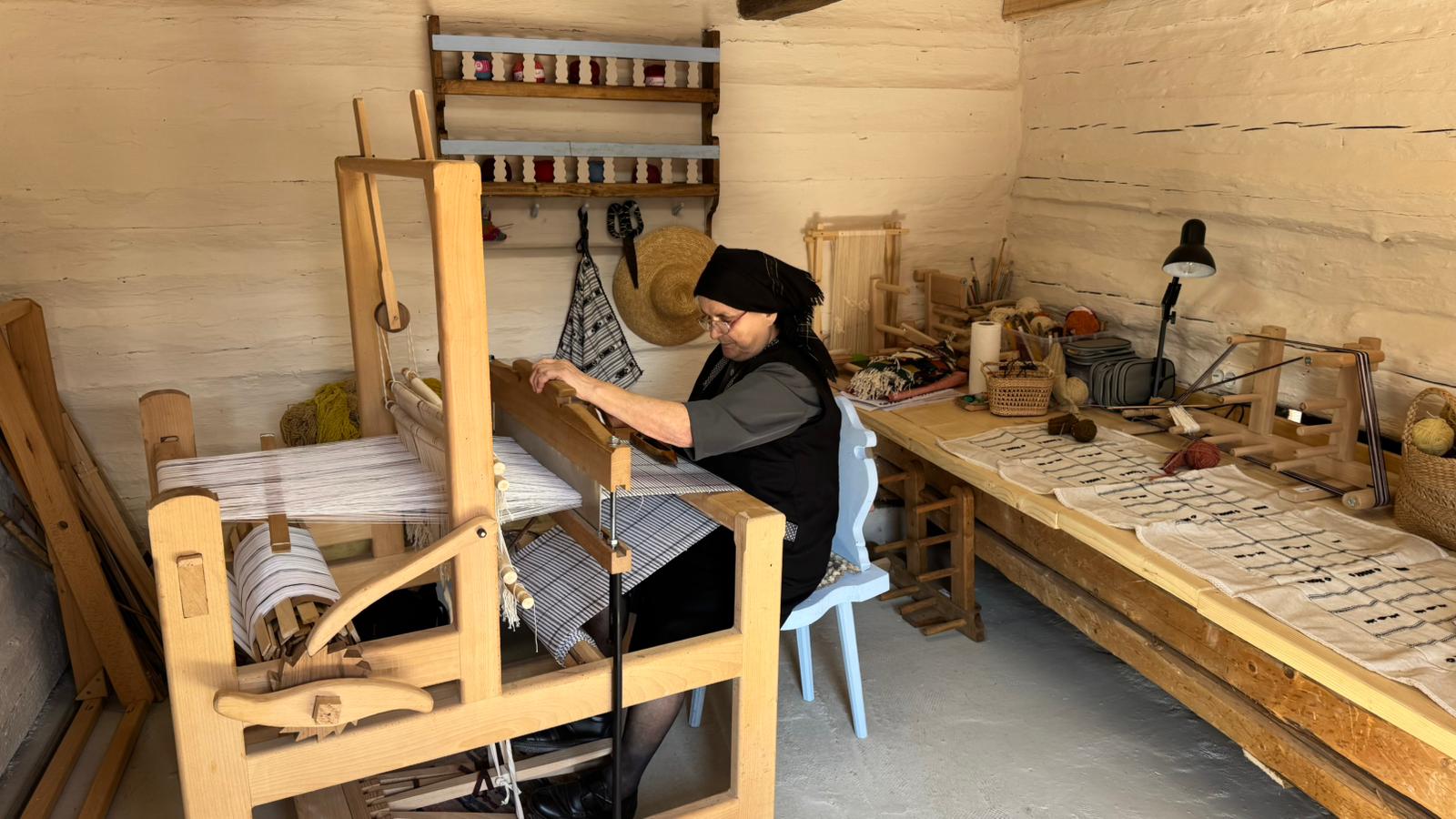 This is not just an exhibition space. Over the past months, the site has already hosted practical workshops, now integrated into a structured framework developed through the project. The 19th-century household has been carefully adapted into a functional learning environment, with the barn transformed into a fully equipped workshop featuring looms, tailoring tools, ironing stations, cutting tables, and pattern-making materials.
