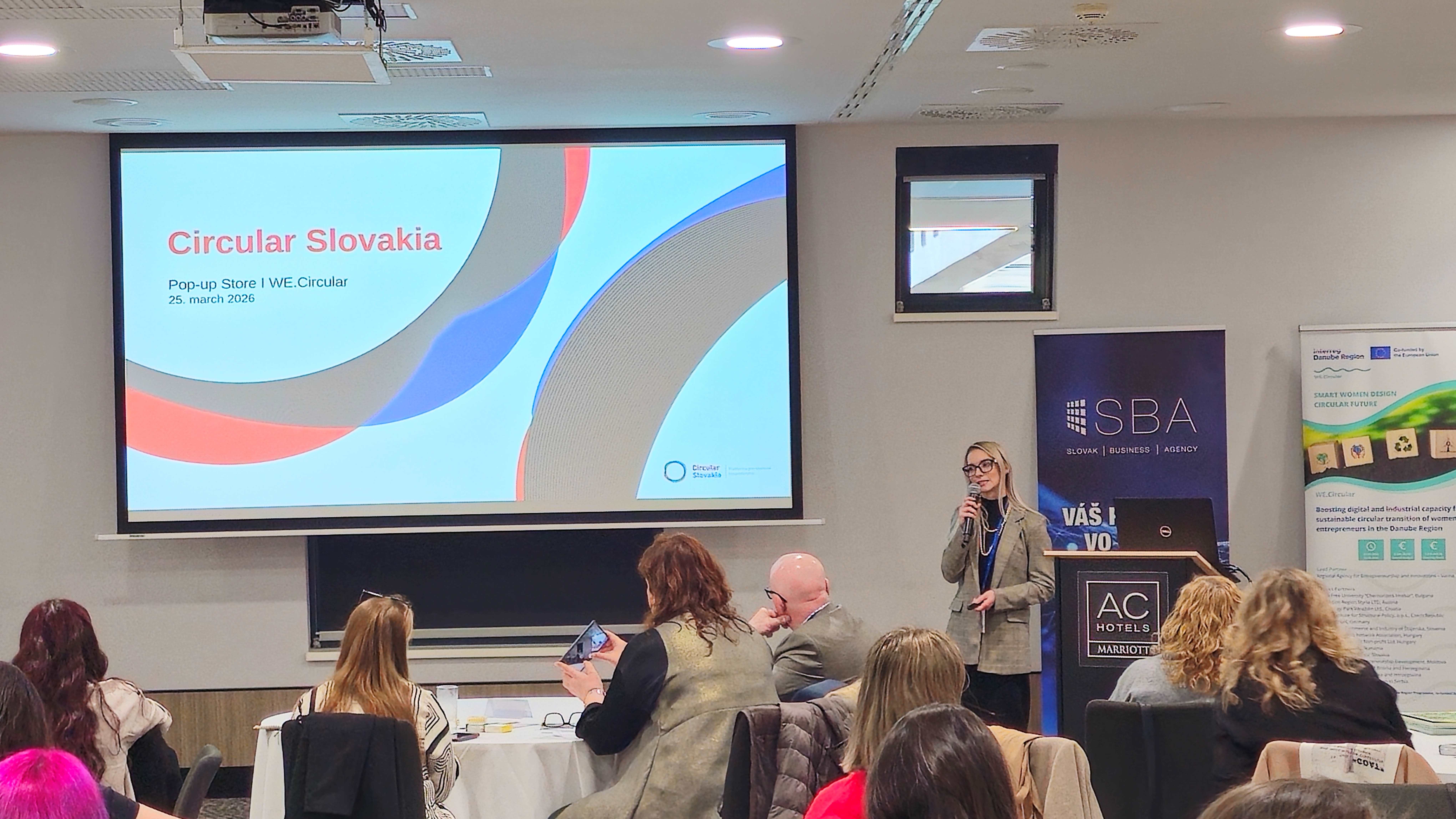 On 25–26 March 2026, the Slovak Business Agency hosted the international WE.Circular Pop-up Store Event in Bratislava, bringing together women entrepreneurs, innovators, experts and project partners from across the Danube Region. Over two days, the event created a dynamic space for inspiration, exchange and collaboration around circular economy solutions, women’s entrepreneurship and sustainable business innovation.